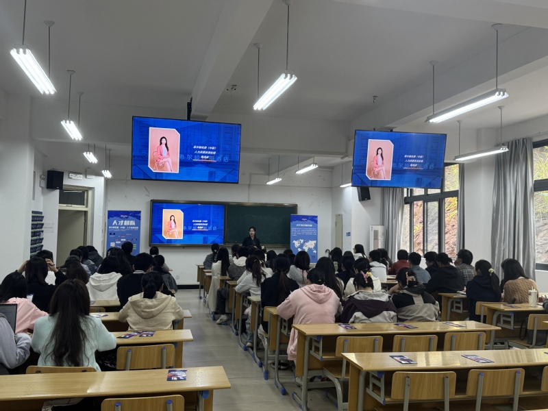 为精准做好2026届应届毕业生就业指导服务,帮助学生明确职业方向、提升就业竞争力,10月23日,我院邀请希尔顿欢朋(中国)企业来校开展专场宣讲会,期间东南区域运营总经理余琛、人力资源资深经理陈禹彦结合自身酒店行业从业经历,从行业认知、基层实践、终身学习等为毕业生带来了干货满满的就业指导分享。