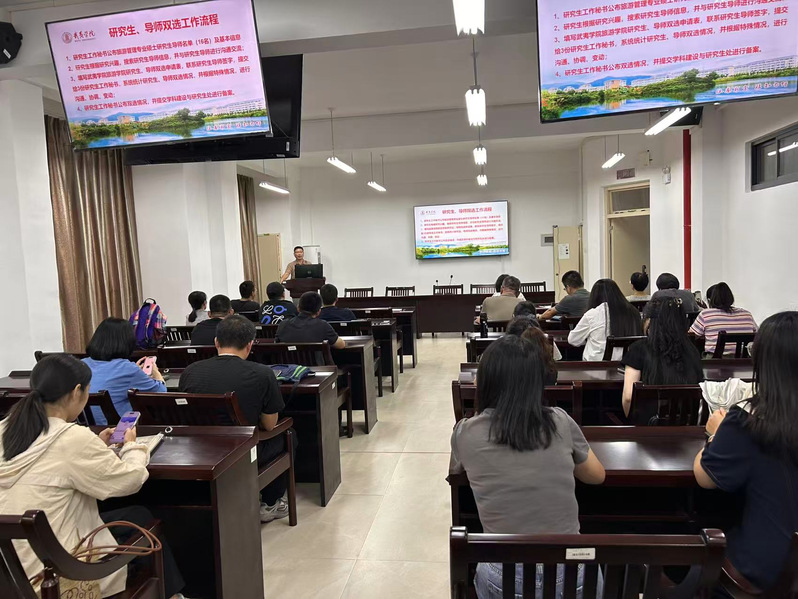 依据旅游学院选拔研究生指导教师的具体办法,确定2025级旅游管理专业硕士研究生的指导教师人选。在会上,郭重孟老师详细介绍研究生导师双选流程,强调双选是研究生培养关键环节,必须从志愿填报到确定指导关系进行全流程严格把控,确保公平公正。