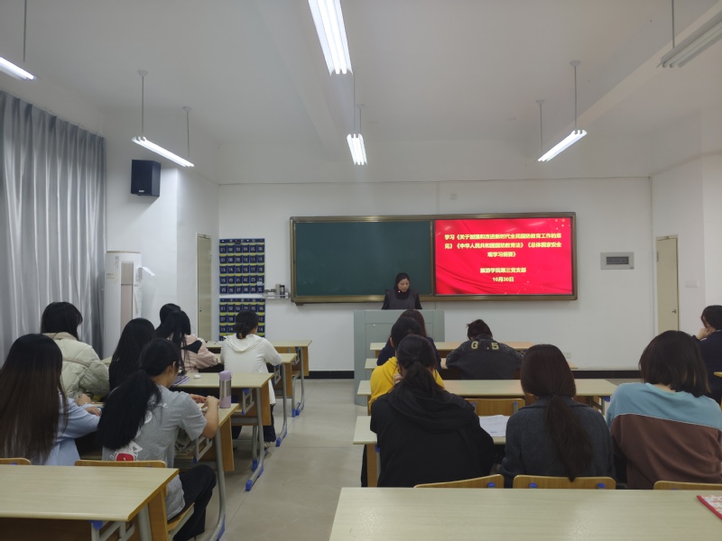 为进一步提升师生党员思想政治素养,加强党员教育管理,近期,我院师生党支部开展专题学习会,传达学习《习近平总书记关于做好新时代党的统一战线工作的重要思想学习读本》《习近平总书记关于加强和改进民族工作的重要思想读本》,认真学习《求是》杂志发表习近平总书记重要文章《中华民族共同体的形成和发展是人心所向、大势所趋、历史必然》以及专题学习《中华人民共和国国防教育法》《总体国家安全观学习纲要》等。