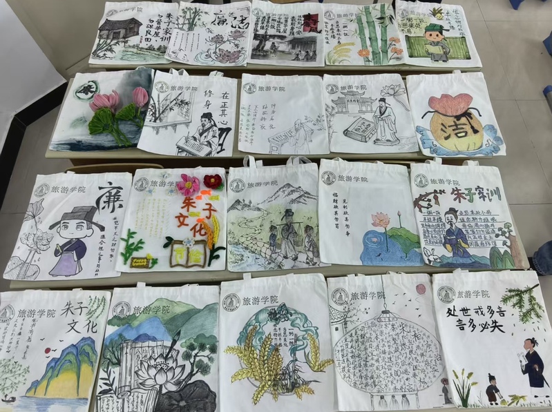 此次活动以“朱子文化·廉洁新风”主题,创新活动开展形式,深度挖掘中华优秀传统文化中的廉洁思想,通过创意设计融入日常生活,使廉洁教育生动直观、深入人心,共绘制完成了80多件作品。作品主题鲜明,做到文字与图案互融,寓意于形,通过不同的角度表达了创作者对廉洁文化的理解和认识,洋溢着清廉之风。同时,以可循环使用的文创布袋为载体,巧妙传递了绿色环保与可持续发展的生活理念。