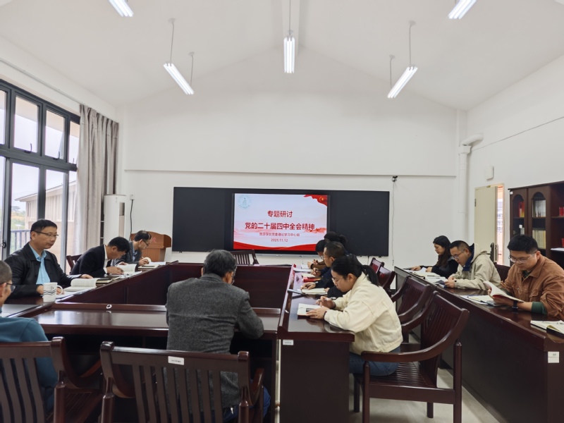 11月12日,我院党委在同文7-405室召开理论学习中心组学习会,旅游学院党委书记祁少华主持会议,各党委委员、支部书记参会。会议传达学习党的二十届四中全会精神并开展研讨,张达青、韦爱玉、郭重孟作主题发言。