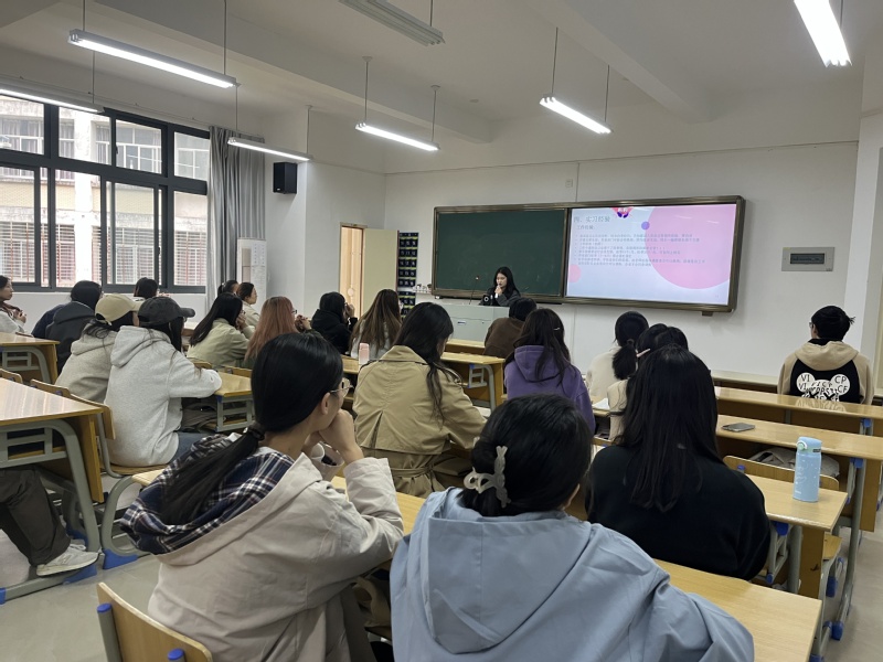 分享会结束后,学院紧接着在同文8-102教室为2023级酒店管理与旅游管理专业学生组织了简历制作与面试技巧指导主题班会,由韦爱玉老师主讲。本次活动通过朋辈引领与专业指导相结合的方式,为学生搭建了实习交流平台,助力明确职业方向,提升就业竞争力。