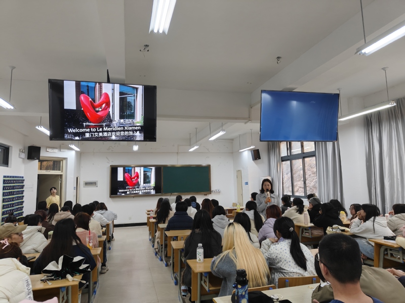 此次参加分酒店和文旅景区两个会场。文旅景区会场,武夷山海亮科技有限公司、南平武夷云谷建发、杭州西溪湿地、杭州宋城、浙江横店影视城、杭州开元森泊度假乐园等合作企业参加,酒店会场,厦门建发旅游集团成员酒店、晋江温德姆、厦门万豪以及厦门七尚、厦门艾美、武夷山青竹山庄等酒店企业参加。宣讲企业主要从企业概况、实习生岗位与职责、薪资待遇及晋升体系等方面展开介绍,并现场为学生解答。