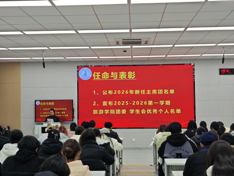 为总结过往经验、表彰先进榜样、明确未来方向,旅游学院团委学生会于12月28日晚在同文4-106教室召开2025年度总结暨表彰大会。学院团委学生会全体成员齐聚一堂,共同回顾过去,展望未来。
