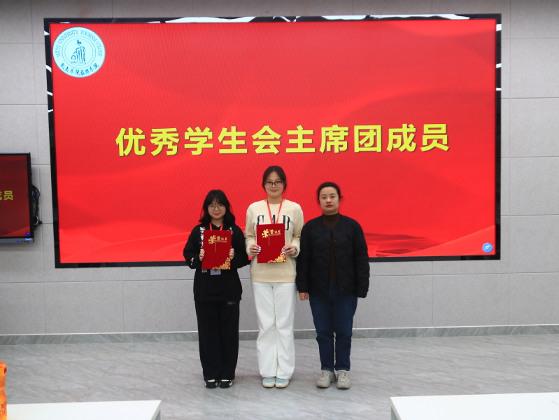 述职结束后,大会进入任命与表彰环节。刘蓉老师现场公布了2026年团委学生会主席团成员名单,并宣读了2025-2026学年第一学期团委学生会优秀个人表彰决定。这份荣誉既是对过去付出的肯定,也为全体成员树立了学习榜样,现场掌声不断。