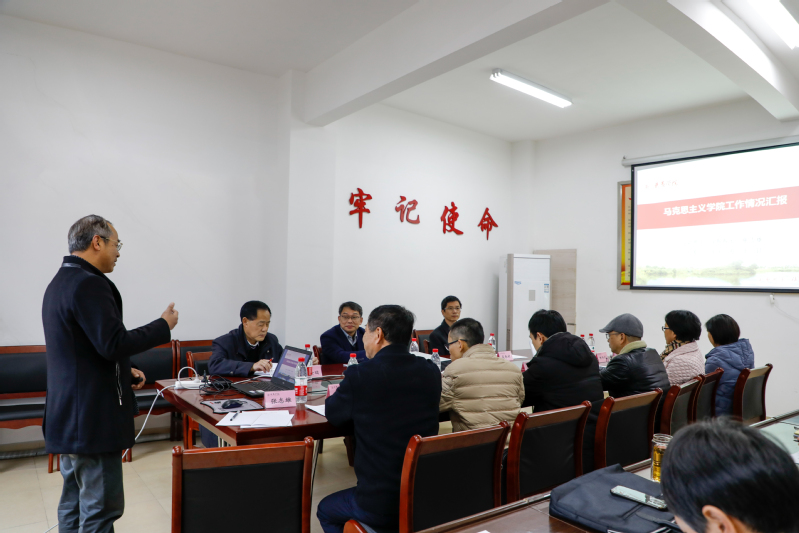 吴承祯校长就加强我院建设提出具体要求:一要深刻理解党中央加强马克思主义学院建设的核心要义,着力加强自身内涵建设;二要深刻把握新出台的高校思想政治理论课教学标准,着力发挥关键课程育人作用;三要深刻领会思政课程创新改革的精神实质,实现思政课程与课程思政、实践教学与五育并举、科学研究与学科建设有机结合和一体推进。