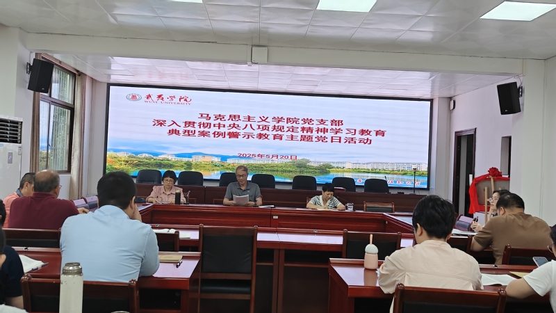 2025520日,马克思主义学院党支部在青马讲坛开展深入贯彻中央八项规定精神学习教育典型案例警示教育主题党日活动。党支部书记张志雄主持,全体党员参加。