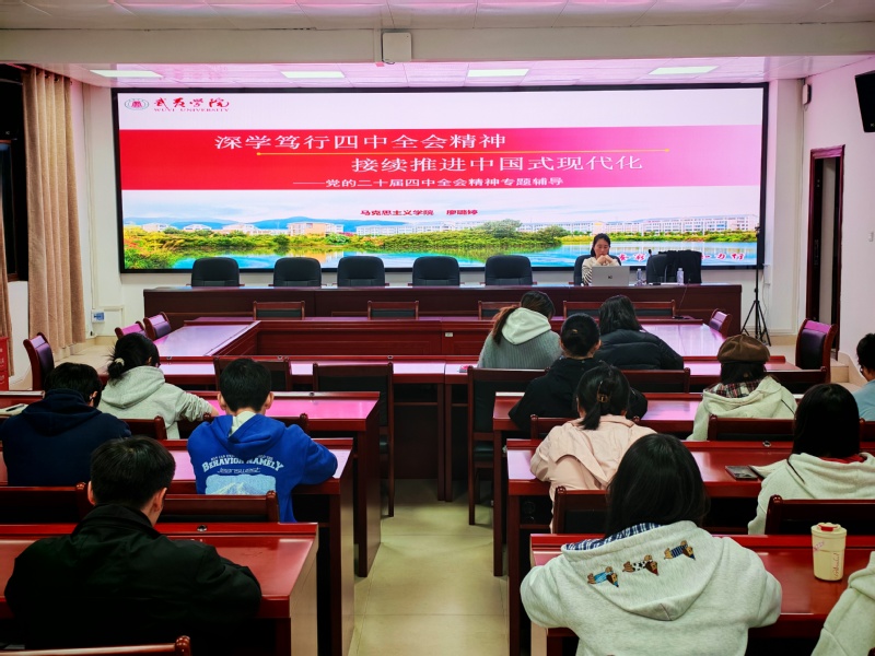为深入学习贯彻党的二十届四中全会精神,深刻领会全会对“十五五”时期经济社会发展的战略部署,引导学生将理论学习与时代使命紧密结合,2025年11月27日,马克思主义学院在青马讲坛开展“学习党的二十届四中全会精神”主题宣讲会。宣讲会由廖璐婷老师主讲,马克思主义理论读书会会员参加。