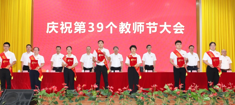 9月7日上午,我校庆祝第39个教师节大会隆重举行。校领导庄祥生、吴承祯、杨昇、张大烛、廖斌、郑细鸣出席。校党委副书记梁方主持。