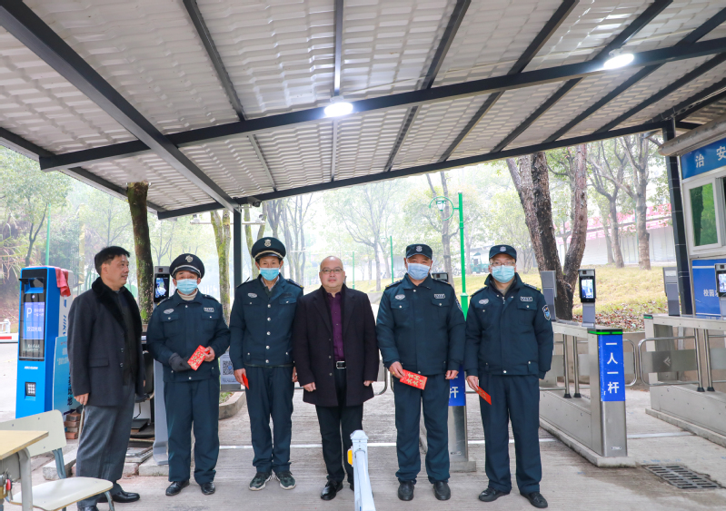 在校大门、东南门和监控室,廖斌亲切慰问安保人员,向他们致以新春祝福,对他们春节期间坚守岗位、守护校园安全表示衷心感谢。