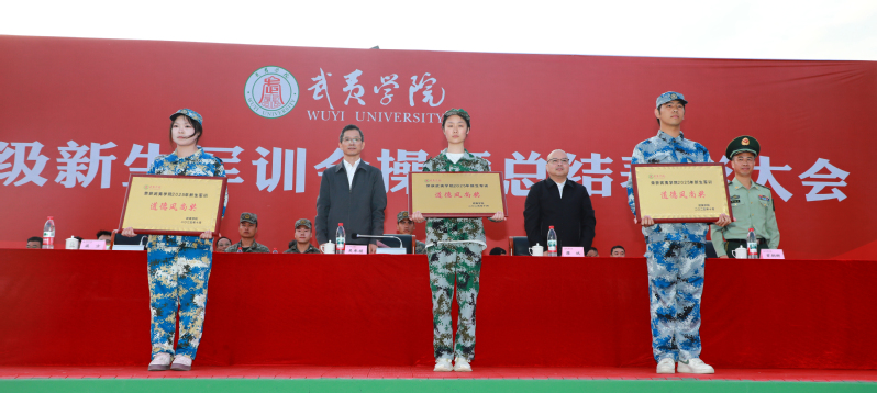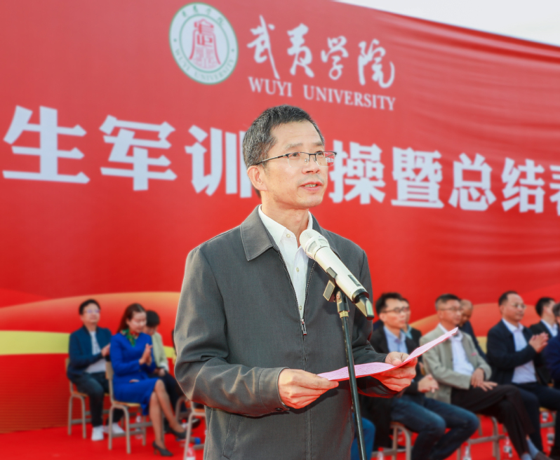 校党委副书记、校长吴承祯在总结讲话中代表校党政向为军训付出辛勤汗水的全体承训教官致以崇高的敬意,向全程参与组织保障的辅导员、医务人员以及所有工作人员表示衷心的感谢,向圆满完成军训任务的全体新同学,以及受表彰的先进单位表示热烈的祝贺。他指出,我校一直秉承“军校一家亲”的优良传统,与武警部队结对共建、互动交流,建立了深厚的军校情谊。今年,武警南平支队鼎力支持我校新生军训工作,精心选派了一支优秀的教官团队,为新生军训注入了强劲的动力。部队官兵以卓越的政治素养、过硬的军事技能、顽强的战斗精神和严明的组织纪律,为我们树立了新时代军人的典范。