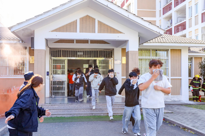 第一阶段开展应急疏散演练。模拟学生公寓发生火情,开展报警接警程序、消防应急疏散、人员搜救、火灾处置等演练。楼管员巡楼发现3楼有火情,立即报警,同时呼叫周边师生应急疏散。教职员工立即组织学生有序疏散,整个疏散过程紧张高效、衔接顺畅,师生全部在规定时间内安全集结。