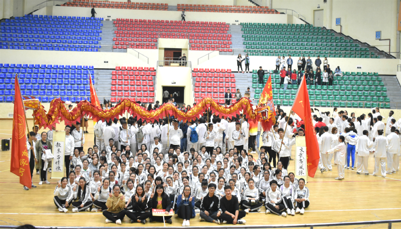 这次太极拳团体赛在万众瞩目下正式开始比赛,十二个院系的方阵蓄势待发,准备展开竞技。“文教精英,敢闯敢拼,百战不殆,we can fly”伴随着整齐响亮的口号,我院太极拳团体的运动员们开始了连贯而不失节奏的表演。随着悠扬的音乐,他们全身柔而有力地开始摆动,每一个动作都舒展有力、刚柔并济。他们身似行云流水,心如皓月清风,双手的动作好似春风拂过脸颊般轻柔,一气呵成、不蔓不枝。最终,人文与教师教育学院以9.03分的好成绩荣获此次太极拳比赛季军。