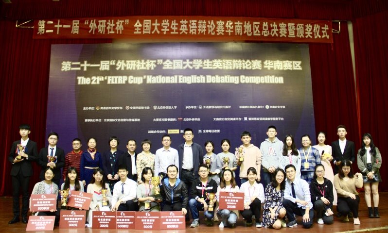 本次大赛由团中央学校部、全国学联秘书处、北京外国语大学主办,外语教学与研究出版社承办,广东团省委学校部许业河副部长、外研社章思英副总编辑、华南农业大学校团委张耿书记出席了决赛暨颁奖仪式。