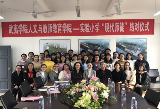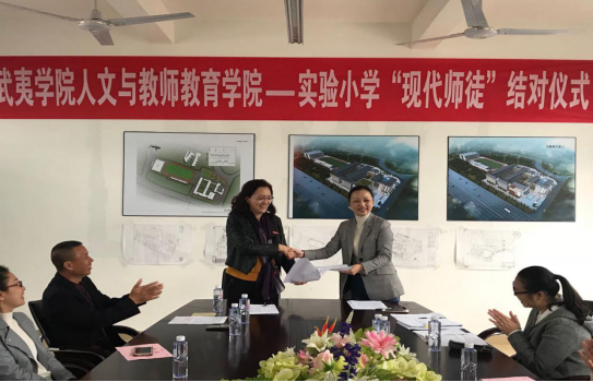 11月13日下午三点,在武夷山实验小学茶场校区举行了武夷学院人文与教师教育学院与实验小学现代师徒结对活动启动仪式。