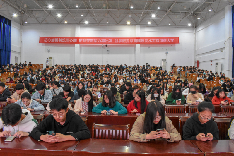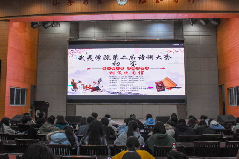 武夷学院第二届诗词大会初赛于11月12日晚上7:30在启贤楼报告厅举行,全校各专业、不同年级的近500位同学参与了此次比赛。本次活动由教务处主办,文教院承办。