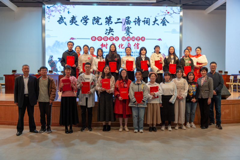 为弘扬中华优秀传统文化,树立文化自信,11月26日晚,武夷学院第二届诗词大会决赛,于大学生活动中心报告厅举办。本次大赛由武夷学院教务处主办、人文与教师教育学院中文系承办;人文与教师教育学院团委学生会、武夷学院“诗词楹联协会”协办。校长吴承祯、纪委书记陈宗荣、图书馆馆长徐俐华出席本次活动。
