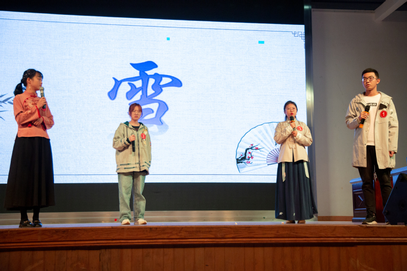 第二届诗词大会的15名决赛选手从初赛的400多人中再经半决赛的激烈角逐,层层脱颖而出。大赛分对答如流、点字成诗、抢答和飞花令四个精彩环节,让古典诗词更加生动有趣,同学们在激情闯关中快乐学习,在智慧比拼中品味经典。