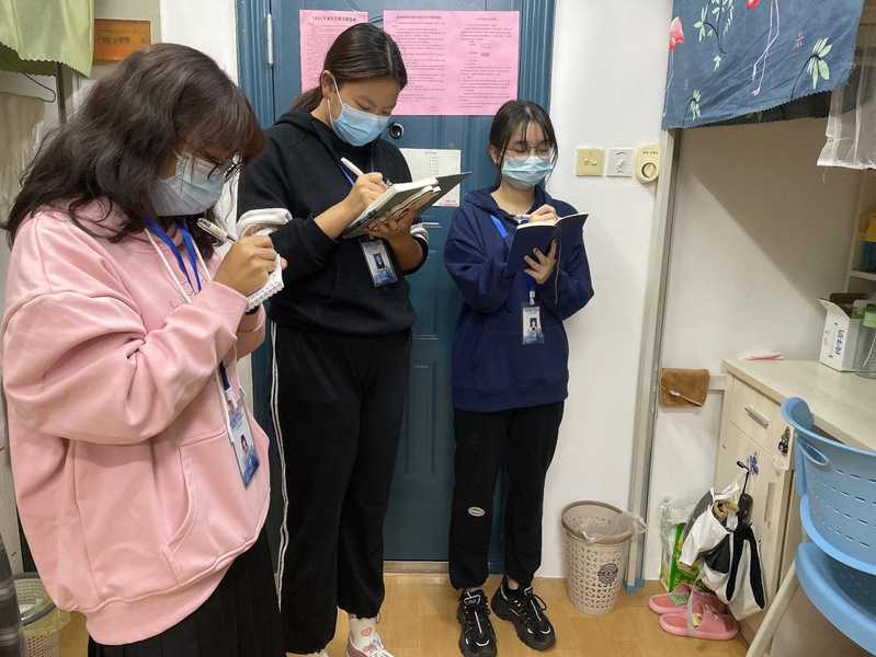 组织部新老干事通力协作,兵分几路。虽然我院学生数多,需要走访的宿舍也多,但部员们仍耐心地完成任务。在检查中,各组领队向各宿舍强调了宿舍用水用电的安全问题,提醒同学们严格遵循疫情防控的相关要求,做好安全防护和保暖,并针对不足之处提出改进的措施。宿舍检查过程中,气氛融洽,以此也增进学生会成员与同学们的友谊。同时,也针对我院即将开展的“我爱我家”文明宿舍评比大赛活动进行了初次的实地评分,选出参与“文明宿舍评比大赛”的宿舍。