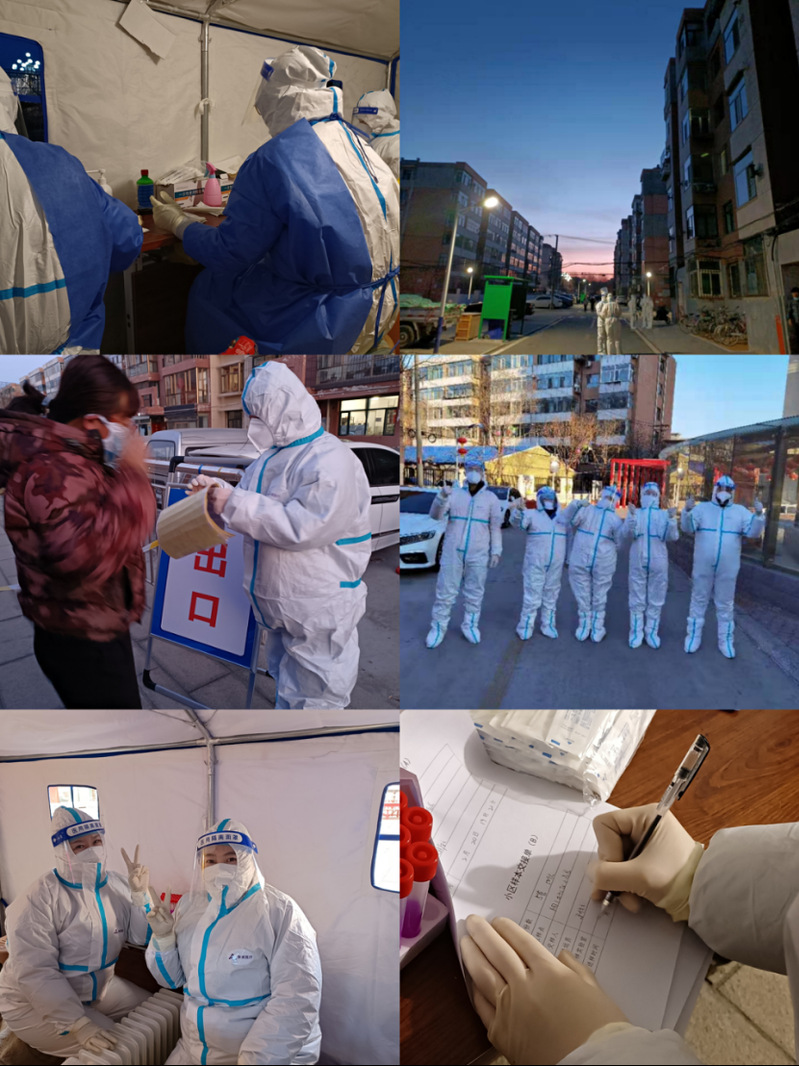 对于第一次参加一线抗疫的曹婧同学而言,面对的是种种考验。每天四点多起床,即便是雨夹雪的天气也要五点到岗,在室外忙于核酸检测的信息采集、装样等,穿着封闭式的防护服连续工作八个小时,有时甚至是十个小时,每天采集量高达一千到两千人次,刚开始经常出现头晕恶心等不适状况。晚上回到酒店,仍要抽空学习专业的防护知识,还要补上因暂缓返校落下的功课,每天睡眠时间最多只