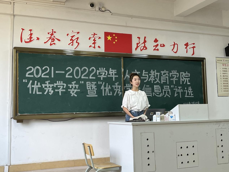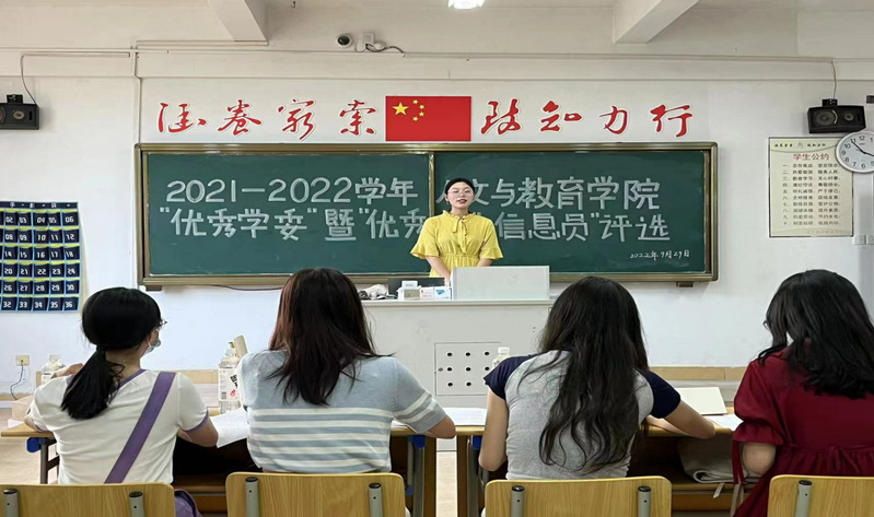 为促进各班学习委员的工作交流,积极配合教科办工作,营造良好的学习氛围。9月29日下午,我院团委学生会学术部举办2021—2022学年人文与教师教育学院“优秀学委”暨“优秀学生教学信息员”评选大会。学术部各前部长作为评委嘉宾出席大会,优秀学委代表及各新生学委参与本次活动,相关教师及辅导员参与评分。