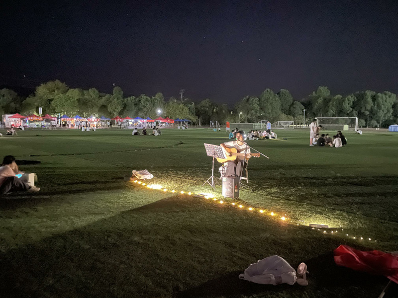 活动期间,各位新生发挥特长,尽情展现自我,在广阔的操场上,与暮色为伴,同晚风共舞,尽显朝气与蓬勃。本次节目精彩纷呈,表现形式多样,不仅有我院特长项目民舞与花球啦啦表演操,还有各类歌曲演唱、乐器演奏、现代舞等,题材新颖,内容丰富,充分展现了当代大学生的青春活力,表达对祖国母亲最真挚的爱和祝福。