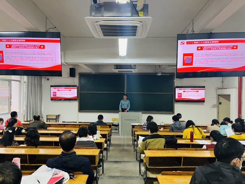 最后,王晓新书记传达学习党的二十大精神,带领全体老师学习了党的二十大报告精神、中纪委工作报告和《中国共产党章程(修正案)》主要精神、习近平总书记在党的二十大闭幕会上重要讲话精神等,要求全体老师深刻领会和理解把握党的二十大报告丰富内涵和精髓要义,切实把思想和行动统一到党的二十大精神上来。坚守“为党育人、为国育才”初心使命,自信自强、守正创新、踔厉奋发、勇毅前行,马上就办、真抓实干,蹄疾步稳推进学校事业改革发展,在全面建设社会主义现代化国家、全面推进中华民族伟大复兴的新征程中展现新担当新作为。