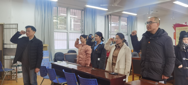 会议组织党员过政治生日,院党委书记王晓新领誓,孙志强、周建琼、宋奕宣、施林娟等同志重温入党誓词,牢记使命担当。
