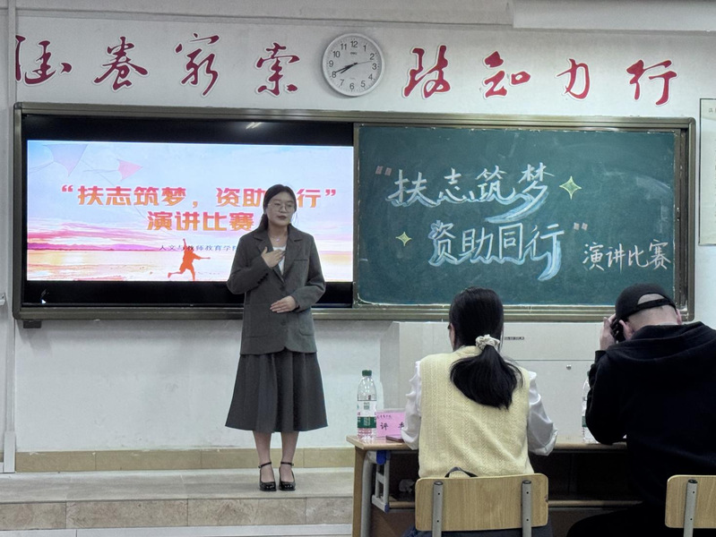 为深入贯彻落实国家资助政策,给资助政策宣传队伍注入新活力,同时激励受资助学生勇于表达自我,分享成长故事,展现新时代青年的责任与担当,3月26日晚,我院于瑞2-303教室举办了以“扶志筑梦,资助同行”为主题的演讲比赛,宋奕宣、孙志强、胡丽婷三位老师担任此次演讲比赛的评委。