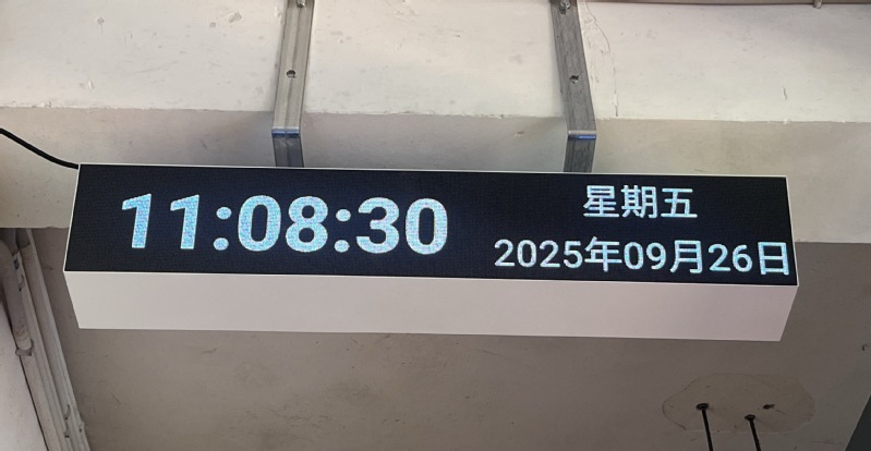 新学期伊始,忙碌的不仅是文教师生,还有悬挂在瑞樟2号楼和新投入使用的学生综合实训楼5楼走廊的8台LED屏电子时钟。它们黑底白字,颜色雅致,清新亮眼,提供时间同时,也装点了教学楼的风景。