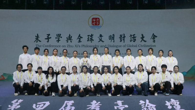 10月18日,由中国社会科学院、国际儒学联合会和福建省人民政府共同主办的朱子学与全球文明对话大会暨第四届考亭论坛在南平市举行。我院70名学子承担主要的志愿服务工作,我院团委全程参与志愿者的招募、选拔、培训与岗位协调工作。我院学子以“文化使者”的身份,为来自世界各地的与会嘉宾提供专业、周到、热情的志愿服务,有力保障大会的顺畅运行,展现了卓越的素养与深厚的文化担当。