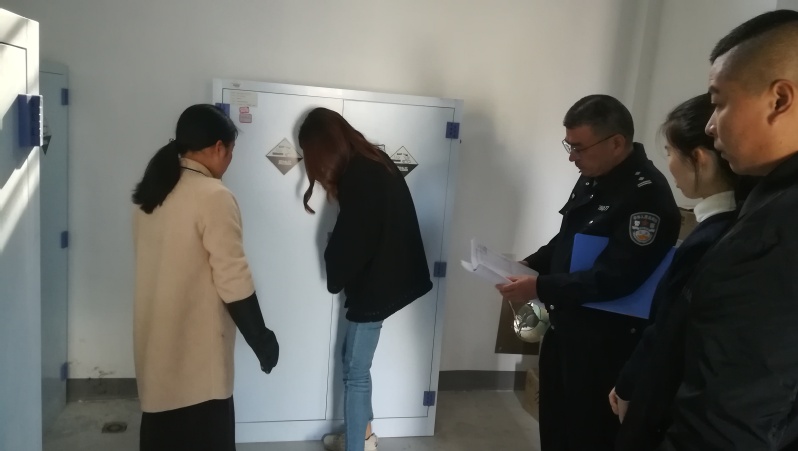 2019年11月20日,武夷山市公安局到我校检查易制毒化学品管控工作。检查组根据《易制毒化学品管理条例》的有关规定,重点检查了我校危化品中转站相关证照、使用管理制度、落实情况;相关从业人员培训、教育开展情况;日常使用、管理台账、库存情况和防盗抢、技防、消防设施情况。检查组通过现场检查、核对账务、查阅资料等方式进行了认真细致的检查,对我校易制毒化学品管控工作表示肯定。