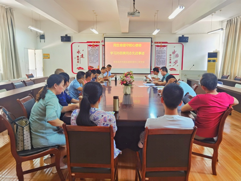 9月9日,信息技术与实验室管理中心党支部在同文3-104召开党员大会,根据中共武夷学院委员会(武院委【2021】112号)文件精神,开展向孙丽美同志学习活动。会上认真学习孙丽美同志的先进事迹和崇高精神,强调要将孙丽美同志先进事迹与党史学习教育结合起来,与开展“再学习、再调研、在落实”活动结合起来,与学习谷文昌、廖俊波等先进典型结合起来,对照先进典型同志先进事迹,扎实开展“我为师生办实事”活动,用心用情用力解决他们的“急难愁盼”问题,做好学校各项工作。