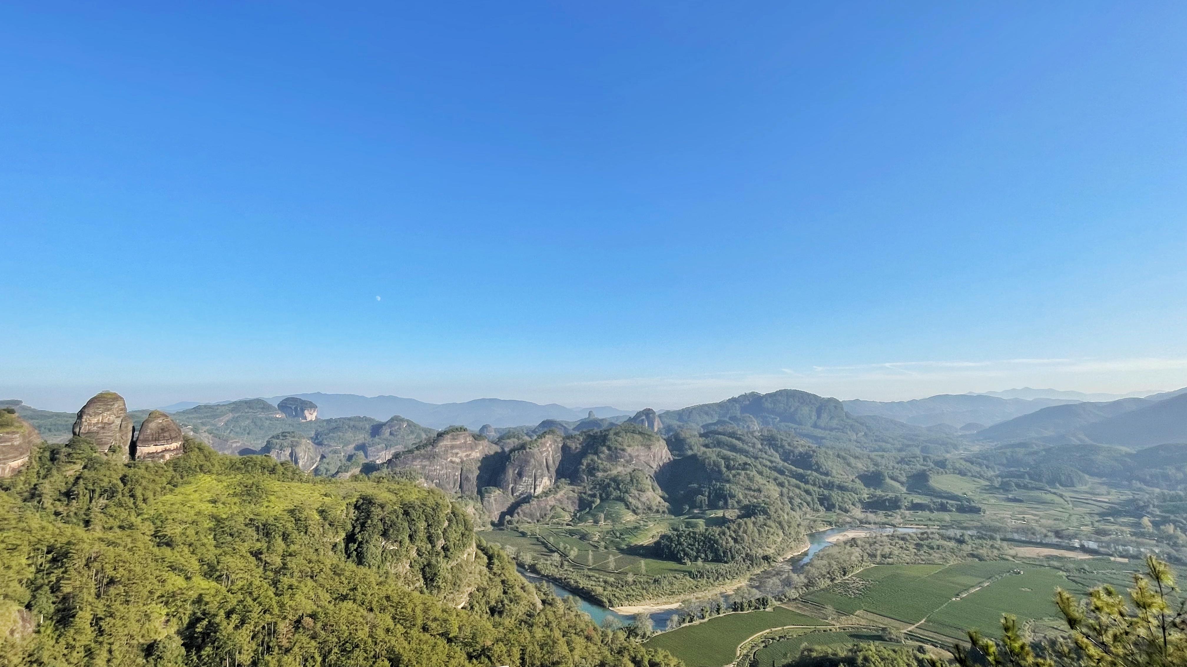 在感受了朱熹文化气息之后,我们随车来到了灵峰,在日落之前攀爬到顶,感受武夷山云海之美,站在山顶俯瞰山下,真正感受到“一溪贯群山,清浅萦九曲。溪边列岩岫,倒影浸寒绿。”