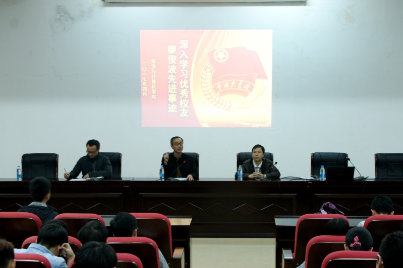2017年4月25日晚,数学与计算机学院团总支深入开展共青团“一学一做”教育实践——学习优秀校友廖俊波先进事迹。学院党总支书记张志雄同志和学工系统全体人员参加了会议,会议由学院团总支副书记赖文豪同志主持。