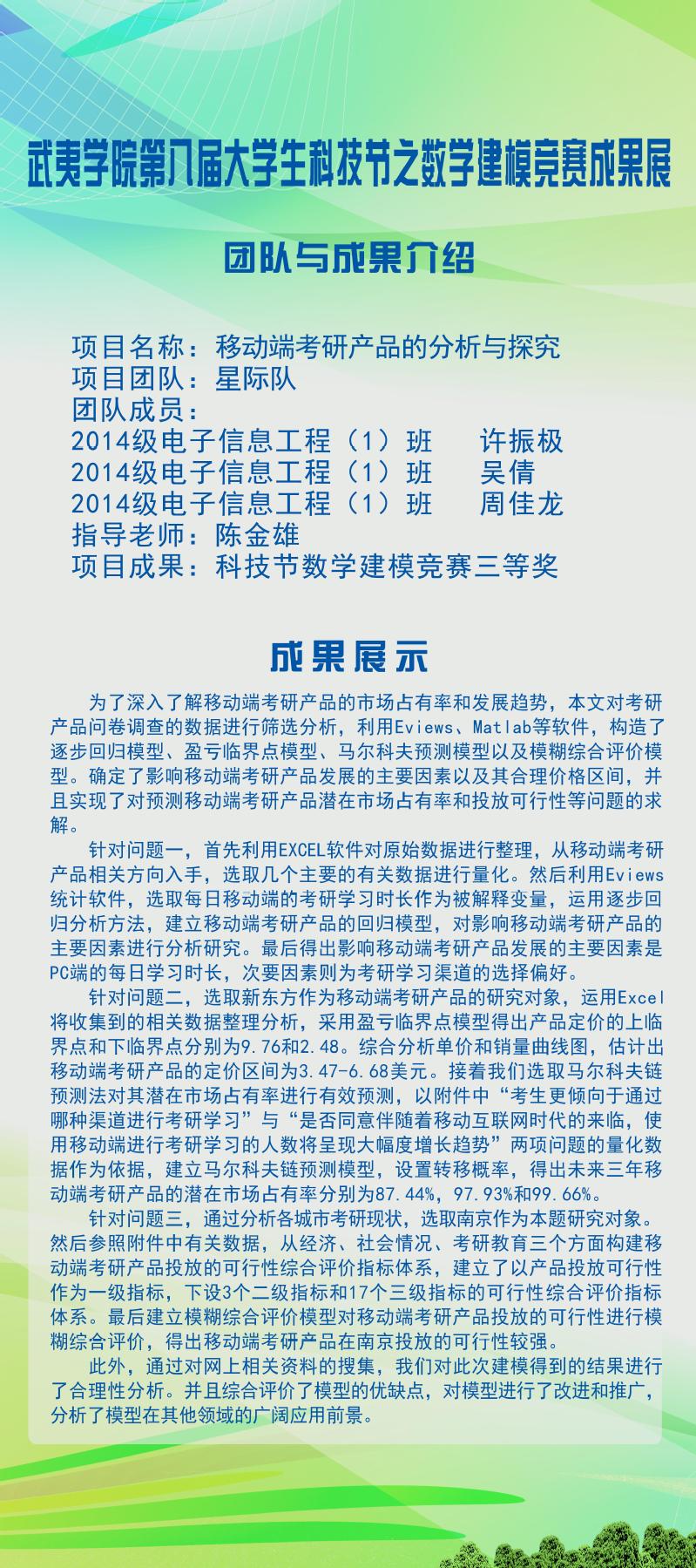 武夷学院第八届科技节(软件设计大赛和数学建模大赛成果展示)