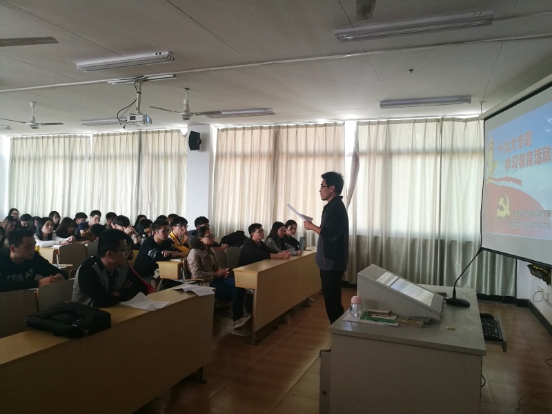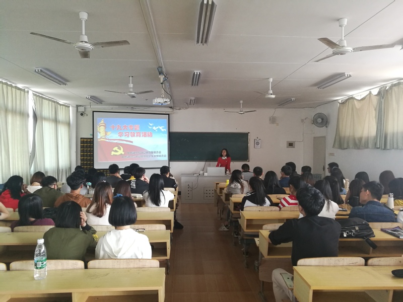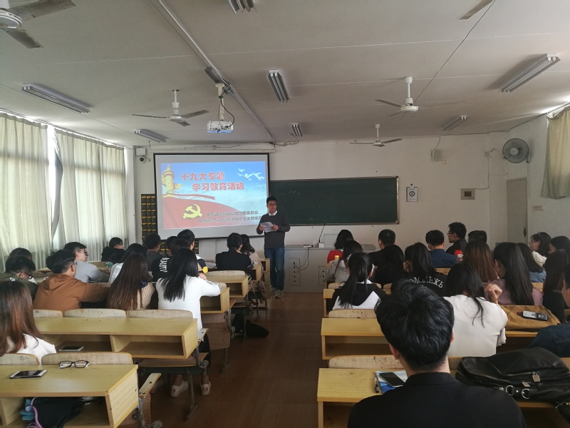 学习教育会上,学生第一党支部书记钟韵珊同志结合旗帜鲜明讲政治,从大学生在新时期的政治意识方面对学生党员进行教育;学生第二党支部书记林衍盛同志就党在过去五年的工作和历史性变革,新时代中国共产党的历史使命以及新时代中国特色社会主义思想和基本方略进行解读;学生第三党支部书记杨乐男同志对十九大党章修改部分进行详细解读,突出将“习近平新时代中国特色社会主义思想”写入党章的重要意义。