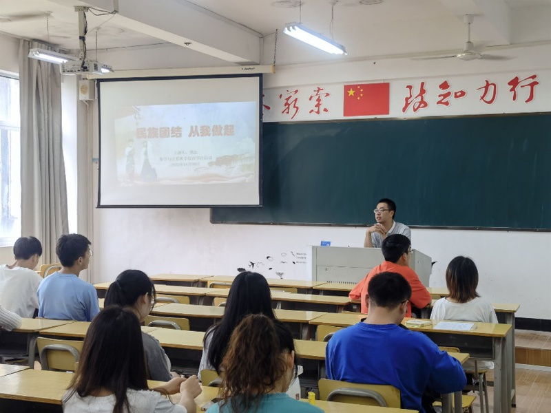 6月9日下午,数学与计算机学院习近平新时代中国特色社会主义思想读书社在瑞樟10号教学楼304室开展活动。本次活动由数学与计算机学院党委统战委员、副院长郭磊老师以“民族团结,从我做起”为主题进行讲解,各班团支部书记和少数民族学生代表参加活动。