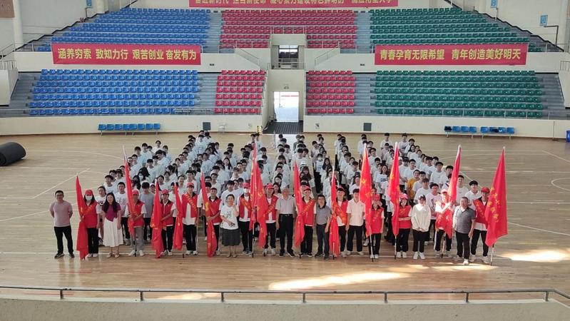 2022年6月23日下午3点,数计学院党委许肇刚书记、何荣福副书记、全体辅导员及全体省运会志愿者在校体育馆召开数学与计算机学院省运会志愿者出征仪式。