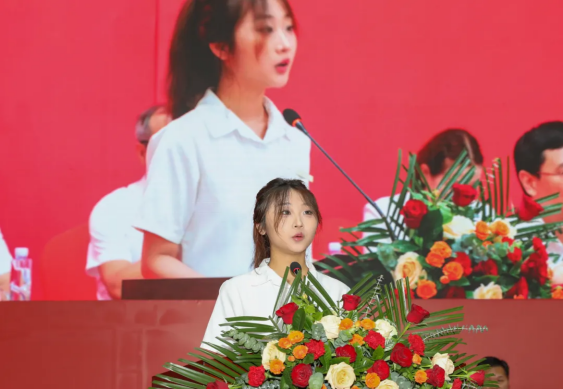 和萱首先向辛勤耕耘在教育一线的老师们致以崇高的敬意,感谢他们为学子们的成长所付出的心血与汗水。随后,她真诚地回顾了与同学们共同度过的时光,分享了彼此之间的友谊与成长故事。对于即将踏上新旅程的学长学姐们,和萱送上真挚的祝福。祝福他们追梦路上始终保持初心,勇于追梦,不畏艰难,勇往直前,将所学知识运用到实际工作中,为社会的发展贡献自己的力量。