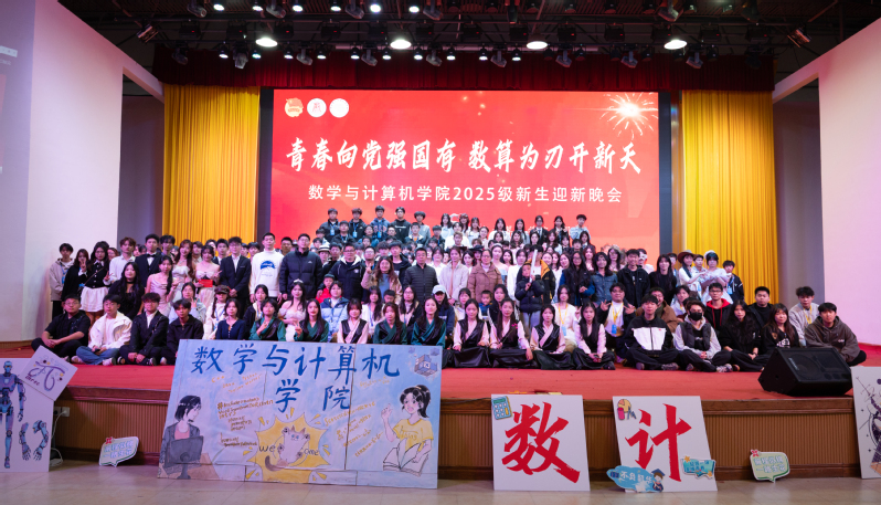 11月28日晚,我院“青春向党铸信念,数算为刃启新程”2025级迎新晚会在大学生活动中心报告厅举行。学院领导、教师代表与2025级全体新生欢聚一堂,共同见证这场融合家国情怀与专业特色的视听盛宴。晚会在数计话剧社的话剧《哦!初入大学的生活》中拉开帷幕,节目生动展现了新生从迷茫到坚定的心路历程。数计主表队朗诵《复兴路上的青春告白》,铿锵字句表达了数计青年以代码书写理想,用算法报效祖国的壮志豪情。文艺表演环节精彩纷呈,数计乐队联袂林舒瀚老师演唱《青花瓷》,随后的《星辰大海》唱响了学子逐梦远航的信心。数计舞蹈队先后献上现代舞串烧《Lucifer》&《Mr.chu》&《forever》与民族舞《吉韵·共舞喜宴》,风格各异,韵味十足。压轴节目数计模特队的《牛仔假面夜》为晚会画上炫酷句号。