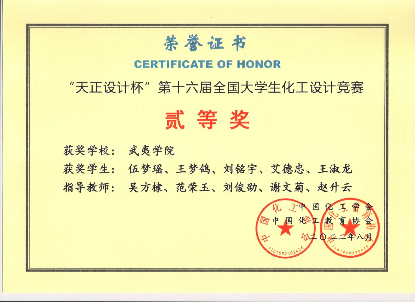 化工学子在第十六届全国大学生化工设计竞赛中喜获佳绩