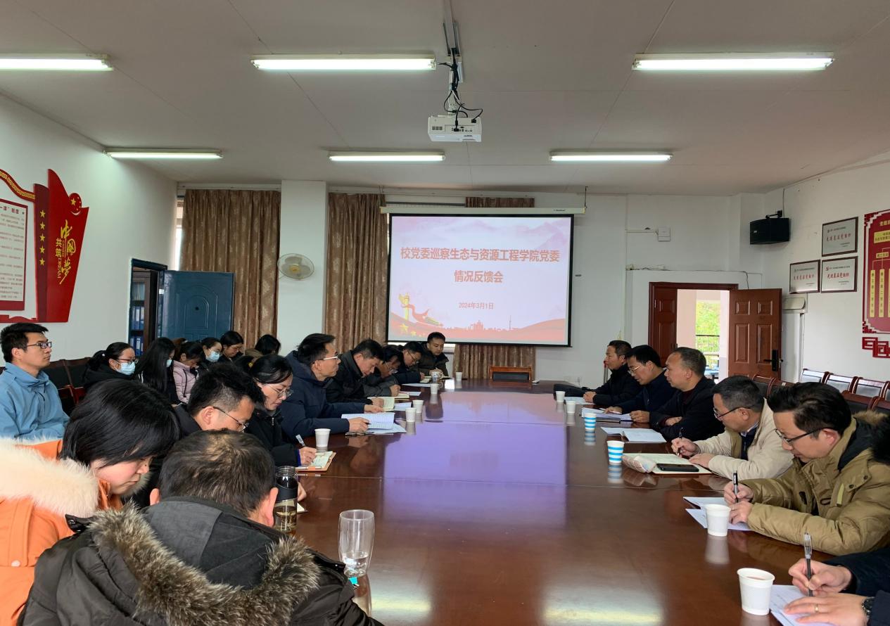 3月1日上午,校党委巡察生态与资源工程学院党委情况反馈会在瑞樟4-402会议室召开。校巡察工作领导小组成员、纪委副书记张本胜、校党委巡察组组长丁鹏、校巡察审计办副主任张福辉等一行出席会议。会议由学院党委副书记宋卫军主持。