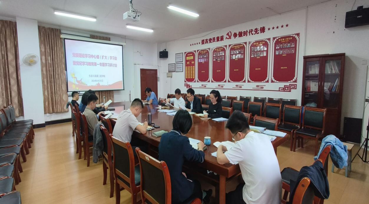 4月25日,生态与资源工程学院党委召开理论学习中心组(扩大)学习会暨党纪学习教育第一专题学习研讨会,围绕“学习贯彻《中国共产党纪律处分条例》”主题开展学习研讨。党委副书记宋卫军主持会议,党委委员、党支部书记和科级干部参加会议。