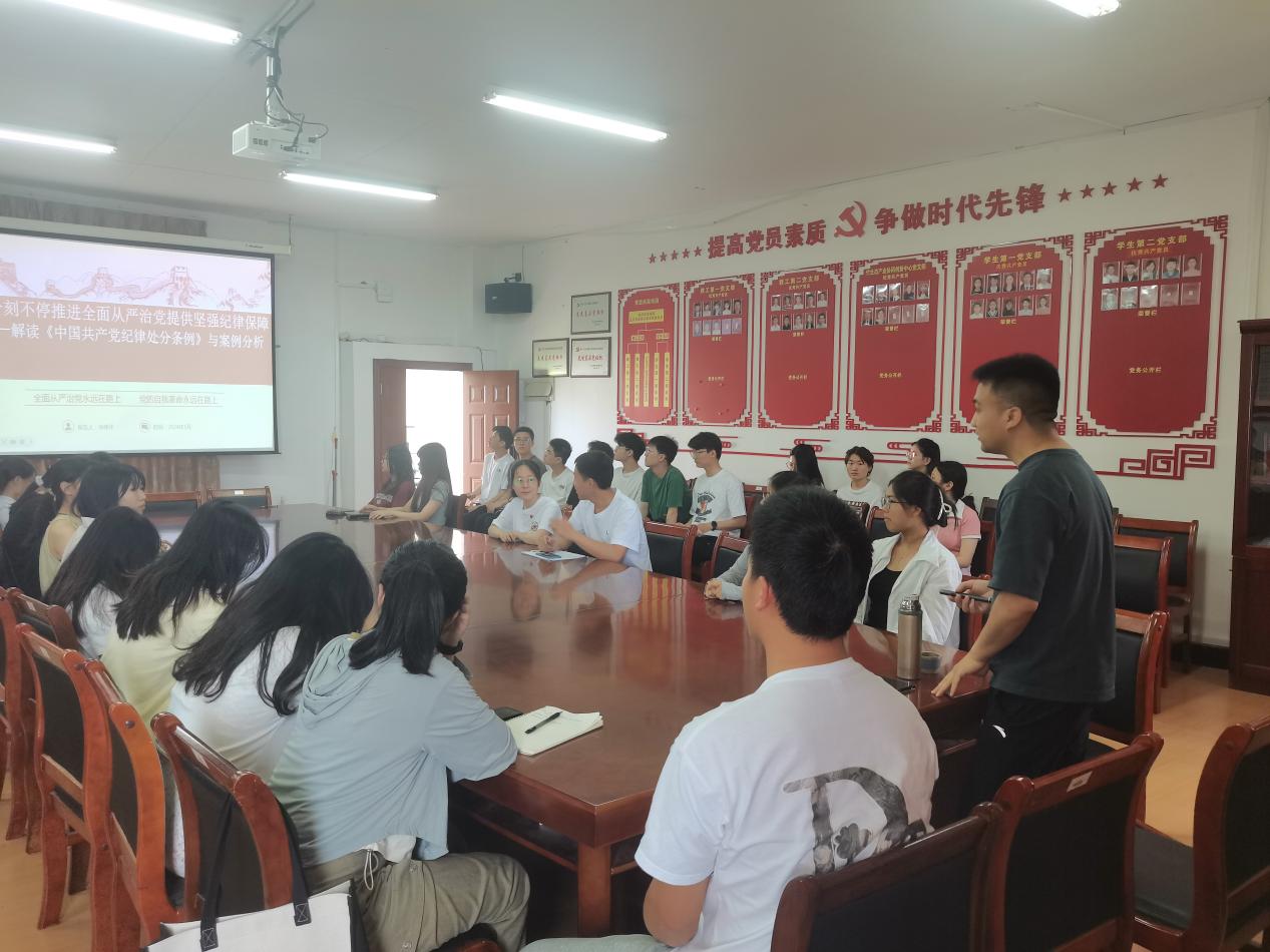 为深入学习贯彻《中国共产党纪律处分条例》,引导学生争做有理想、敢担当、能吃苦、肯奋斗的新时代好青年,2024年5月30日,我院华伟平老师在瑞4教室开展了主题为“为一刻不停推进全面从严治党提供坚强纪律保障——解读《中国共产党纪律处分条例》与案例分析”的党课。学院毕业班党员参加了此次党课。