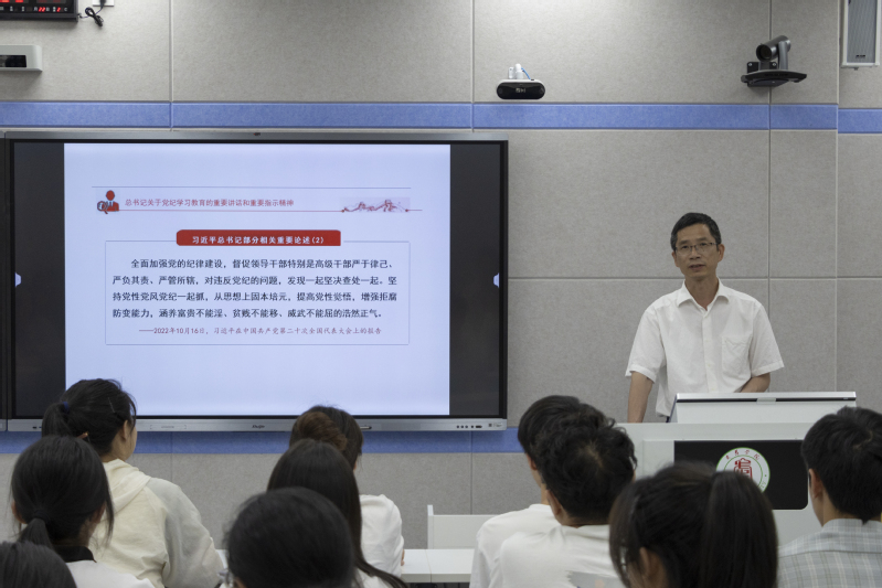 近日,校党委副书记、校长吴承祯以《自觉学纪、准确知纪、心中明纪、严格守纪》为题,为我院师生党员讲授党纪学习教育专题党课。