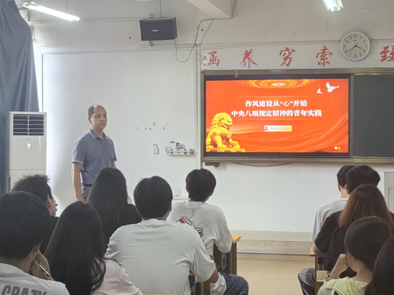 为深入学习贯彻中央八项规定精神,引导青年党员筑牢思想根基、锤炼过硬作风,6月9日,我院党委副书记林平先同志以“作风建设从‘心’开始——中央八项规定精神的青年实践”为题,为学生党支部全体党员讲授深入贯彻中央八项规定精神学习教育专题党课。