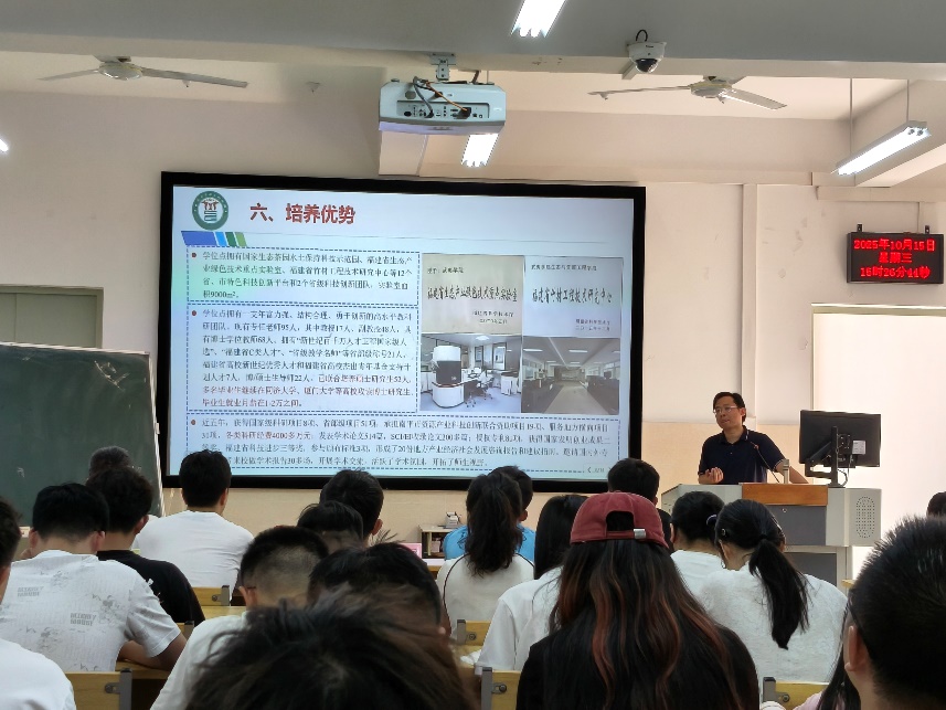 在研究生招生宣传会上,胡家朋副院长就我院历史沿革、研究生招生专业、报考条件、学费及奖助政策、师资力量、科研平台、毕业生去向等情况,向三明学院资源与化工学院的学子做了介绍。宣讲会现场气氛热烈,胡家朋副院长与在场学子进行了面对面、零距离的互动交流。