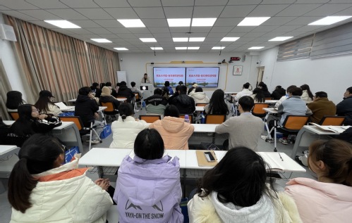 培训现场,程老师围绕青年职业规划、编制考试,重点从就业环境、企业就业、公务员考试、事业单位考试等方面进行了精彩讲解,为同学们详细解读了各类考试的考试科目、题型、考试时间等重要信息,并结合多年教学经验,针对不同备考阶段的学生提供了一系列实用的备考策略和建议。程老师与现场同学交流备考心得,为同学们答疑解惑。通过此次讲座,同学们对就业方向有了一定的规划。
