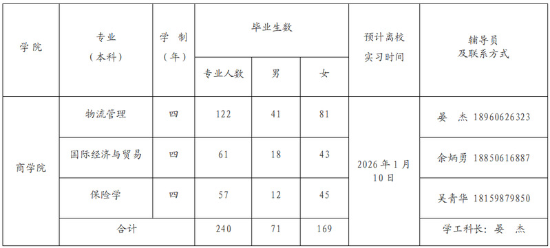 武夷学院商学院2026届毕业生信息